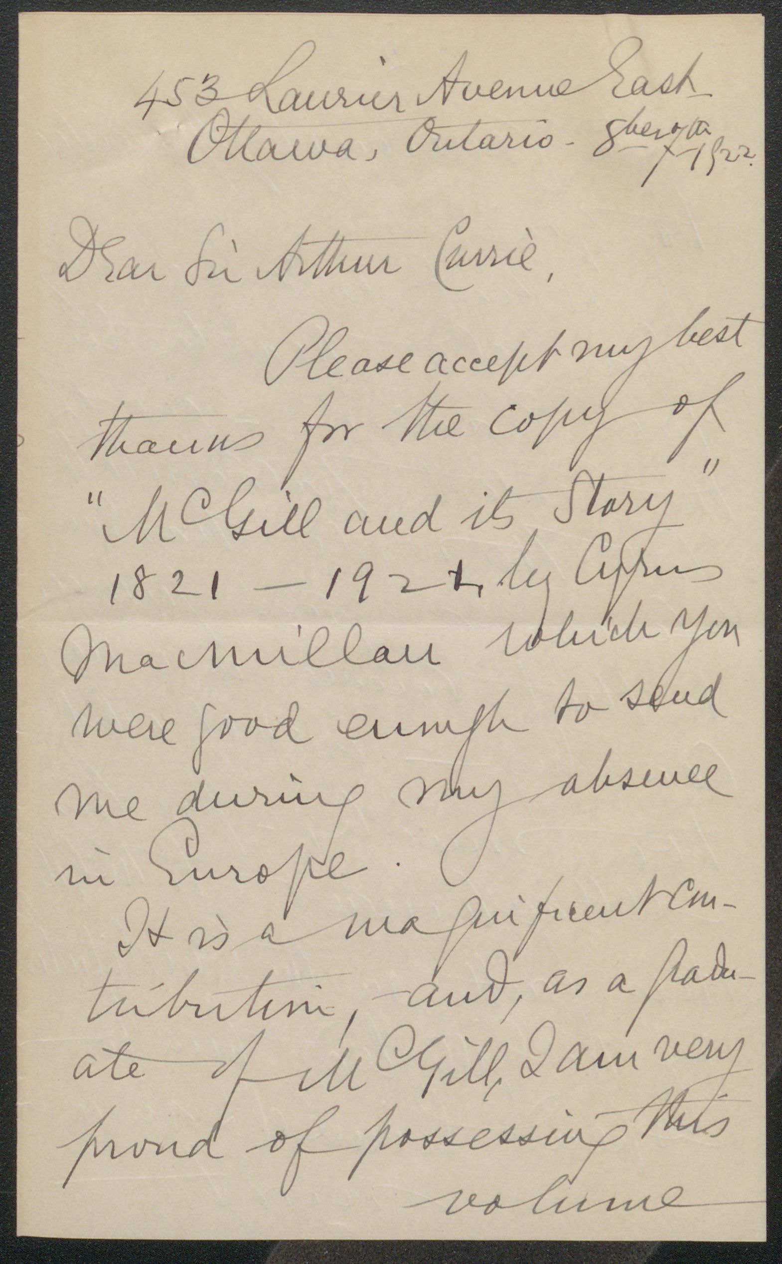 McGill University. Office of the Principal (RG2) : Sir Arthur Currie : Functions at Other Universities and Institutions