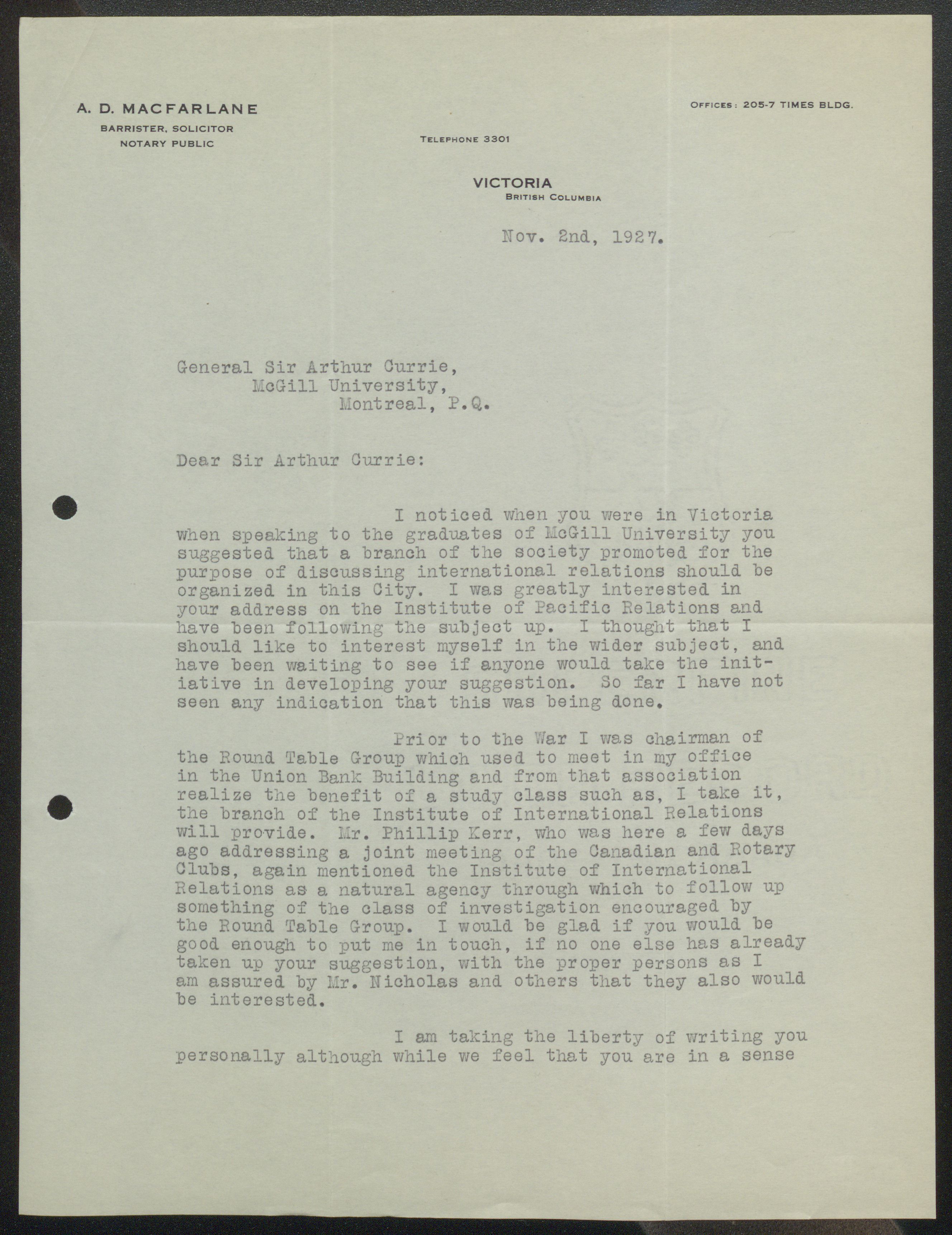 McGill University. Office of the Principal (RG2) : Sir Arthur Currie : Canadian Institute of International Affairs : Executive Council