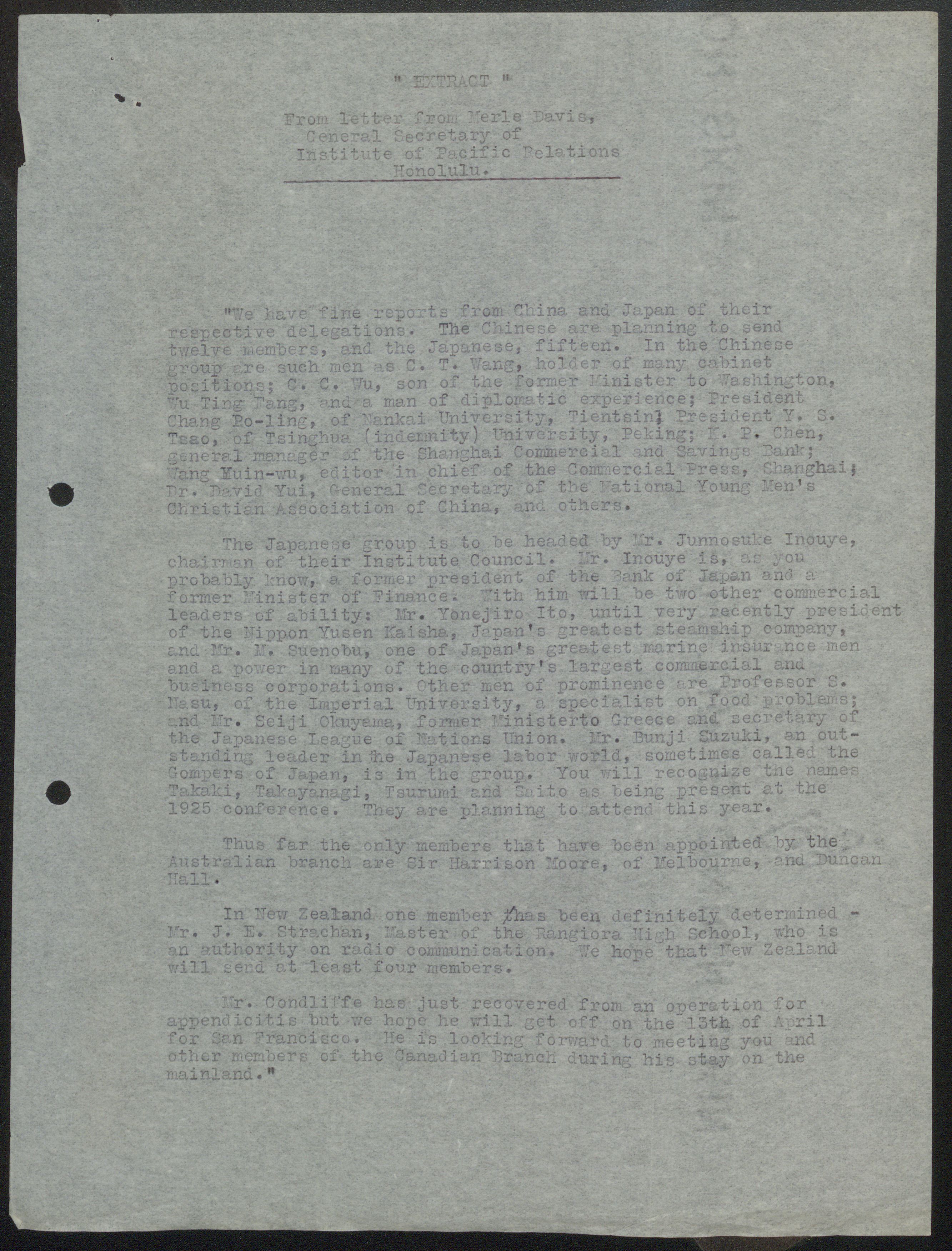 McGill University. Office of the Principal (RG2) : Sir Arthur Currie : Canadian Institute of International Affairs : Executive Council