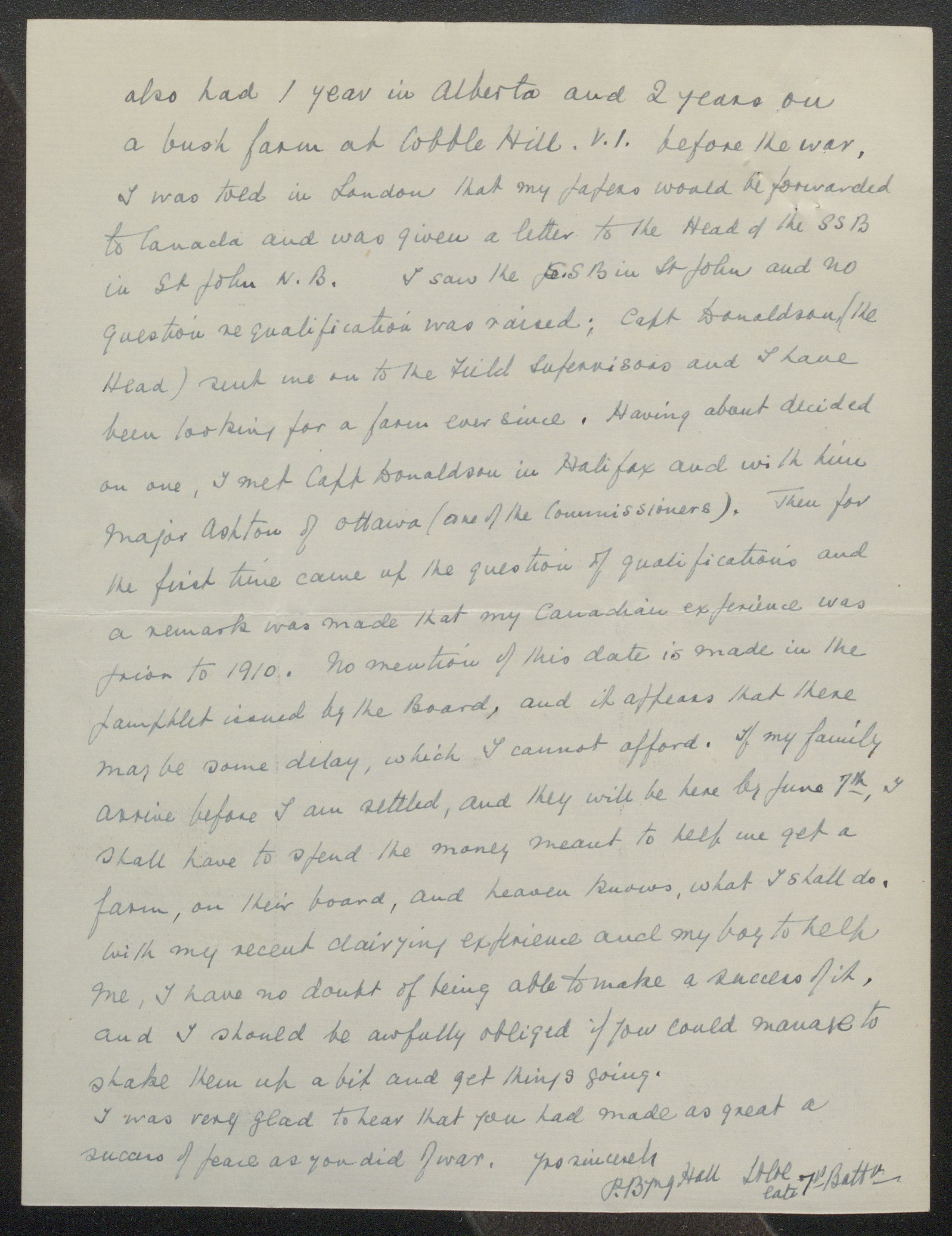 McGill University. Office of the Principal (RG2) : Sir Arthur Currie : Veterans Re-Establishment: A-C