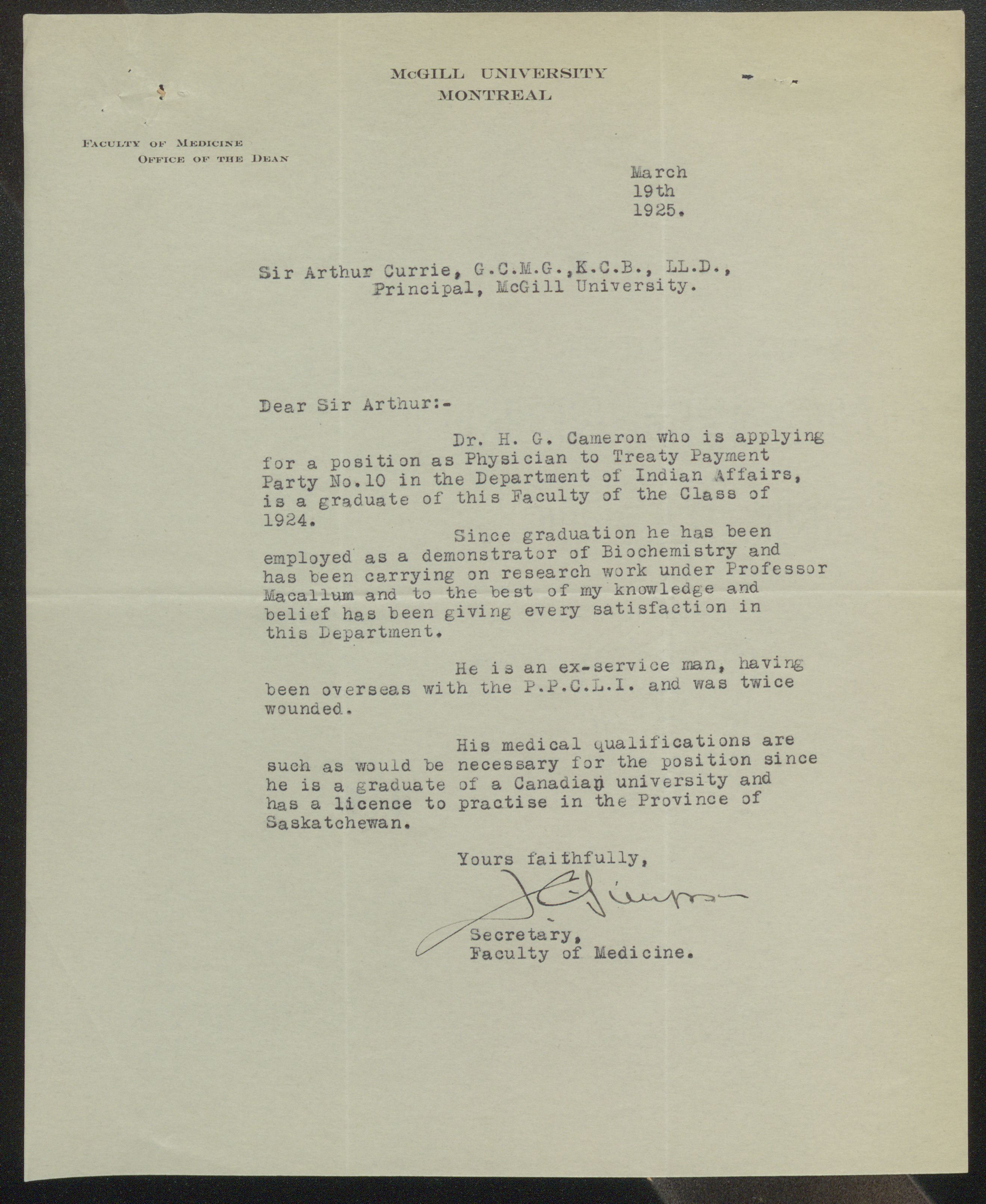 McGill University. Office of the Principal (RG2) : Sir Arthur Currie : Veterans Re-Establishment: A-C