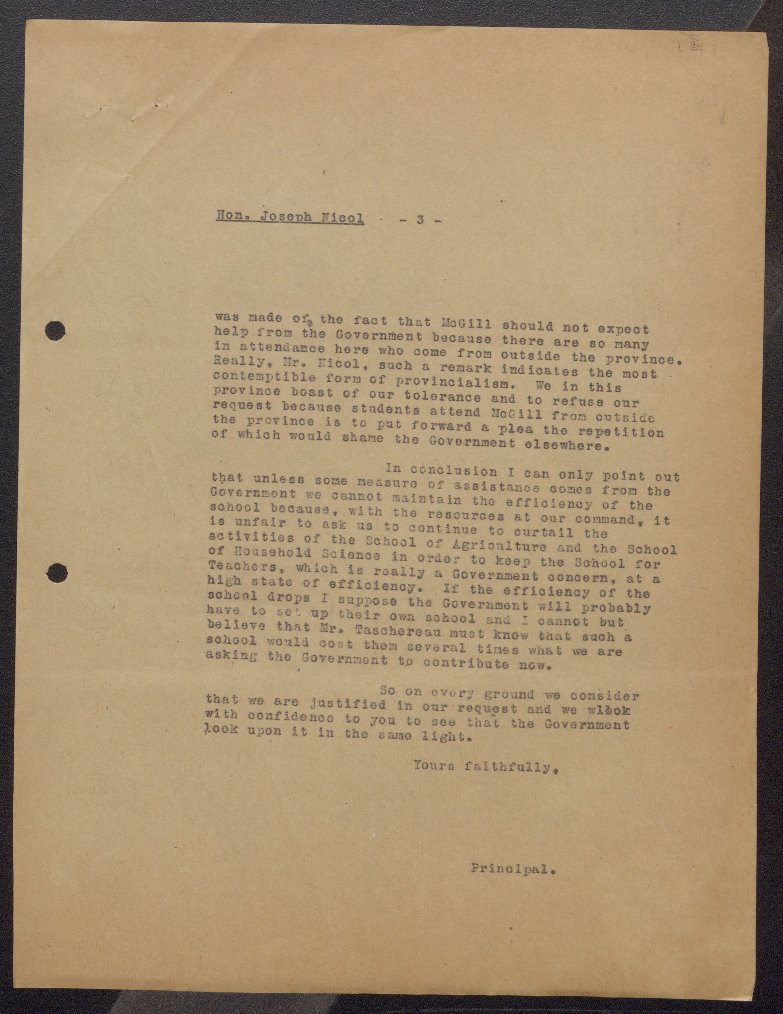 MacDonald College: Teachers; Finances and Provincial Government Grants